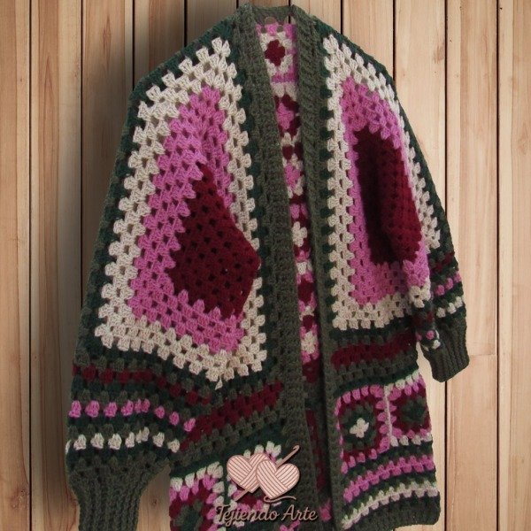 Saco Largo combinado en colores BORDO, ROSA VIEJO, VERDE OSCURO, VERDE OLIVA Y ARENA