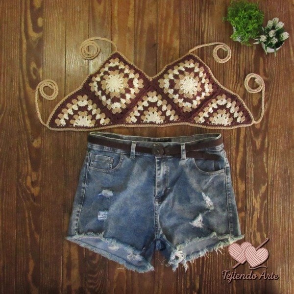Top estilo hippie chic combinado con distintos tonos de CHOCOLATE Y BEIGE y detalles en CREMA