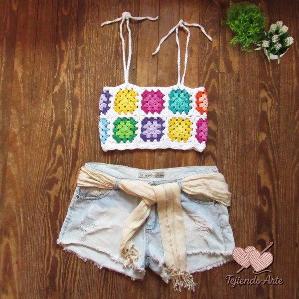 Top tipo bando con base en color BLANCO combinado MULTICOLOR